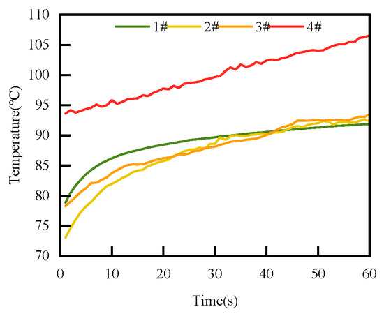 - Start data collection, and use the LabVIEW (version 2020) virtual instrument to set the face vibration acceleration and face temperature sampling frequency to 25,600 Hz, the sampling time to 1 s, and the number of sampling points to 25,600.