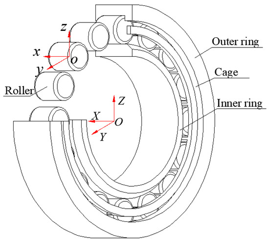 To facilitate the analysis of the motion and force distribution of each component of the bearing, the coordinate system is established as follows: