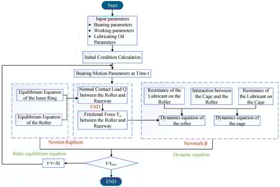 The specific calculation procedure of the dynamic model for cylindrical roller bearings in MATLAB is shown in Figure 10.