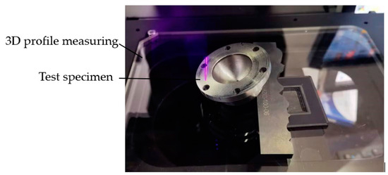 Limited by the experimental conditions, this experiment mainly evaluates the acceleration changes at the slider’s center of mass and the wear of the shell in the spherical joints containing clearances when the spindle speed is 60 r/min, the spherical joint clearance is 0.25 mm, and the coating thickness is 0.1 mm. The spherical joint containing clearances has dry friction, and other joints are fluid-lubricated. The clearance and wear of the rotating and moving joints are not considered in this experiment. The wear depth of the spherical joints with clearances and coatings was measured using a 3D contour measuring instrument. The measurement process is demonstrated in Figure 8, and the model and parameters of each equipment on the experimental platform are shown in Table 2. The test samples were two groups of six, including three uncoated spherical shells and three coated spherical shells with a coating thickness of 0.1 mm. Before testing, the samples should be cleaned, and decontamination should be treated to prevent bumping during transport. In order to reduce the difficulty of the experiment, compared with the theoretical calculation results, the wear range of the spherical joint around the X-axis was about 360°. The 3D profile measuring instrument was selected to measure the surface profile of the shell within the unit square millimeter of every 90° rotation, and the maximum wear depth was selected. Considering the randomness of clearance and wear, this part must measure the three samples several times to obtain the maximum value. The measurement result takes two significant digits.