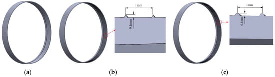 Figure 5. Sealing ring models with different bionic surface structures. (a) Smooth surface (b) V-groove structure. (c) Circular groove structure.