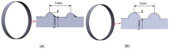 The sealing ring with circular groove structure with groove diameter of 0.4 mm and 0.6 mm is shown in Figure 11. All the figures are circular groove structures, and the groove spacing is 1 mm. The model with a groove diameter of 0.2 mm is shown in Figure 5c.