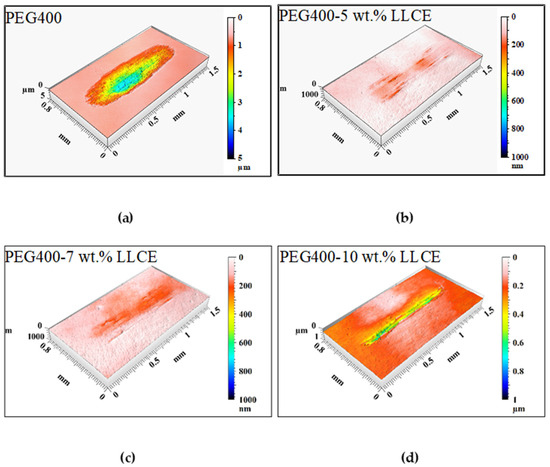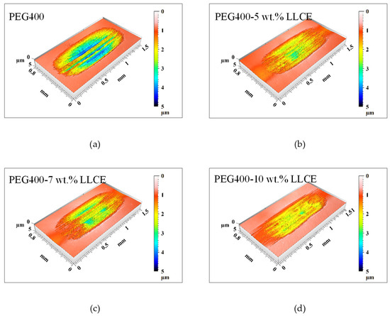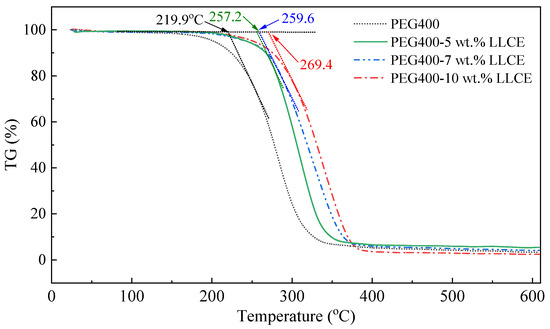 | PEG400 | PEG400-5 wt.% LLCE | PEG400-7 wt.% LLCE | PEG400-10 wt.% LLCE | ||