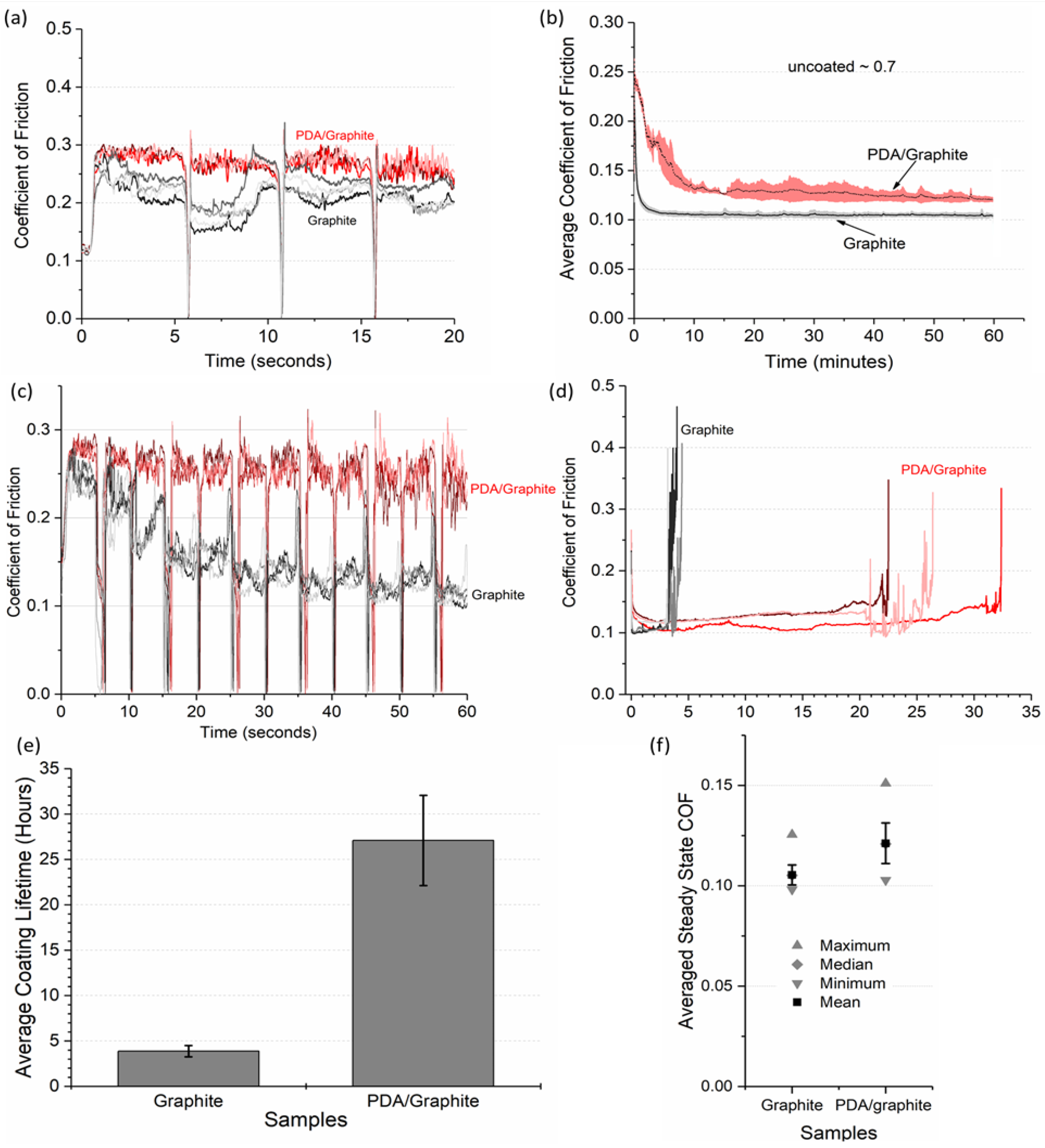 - Run-to-failure tests, where sliding continued until the COF exceeded 0.5, indicating coating failure. The time to failure was recorded as the coating lifetime.