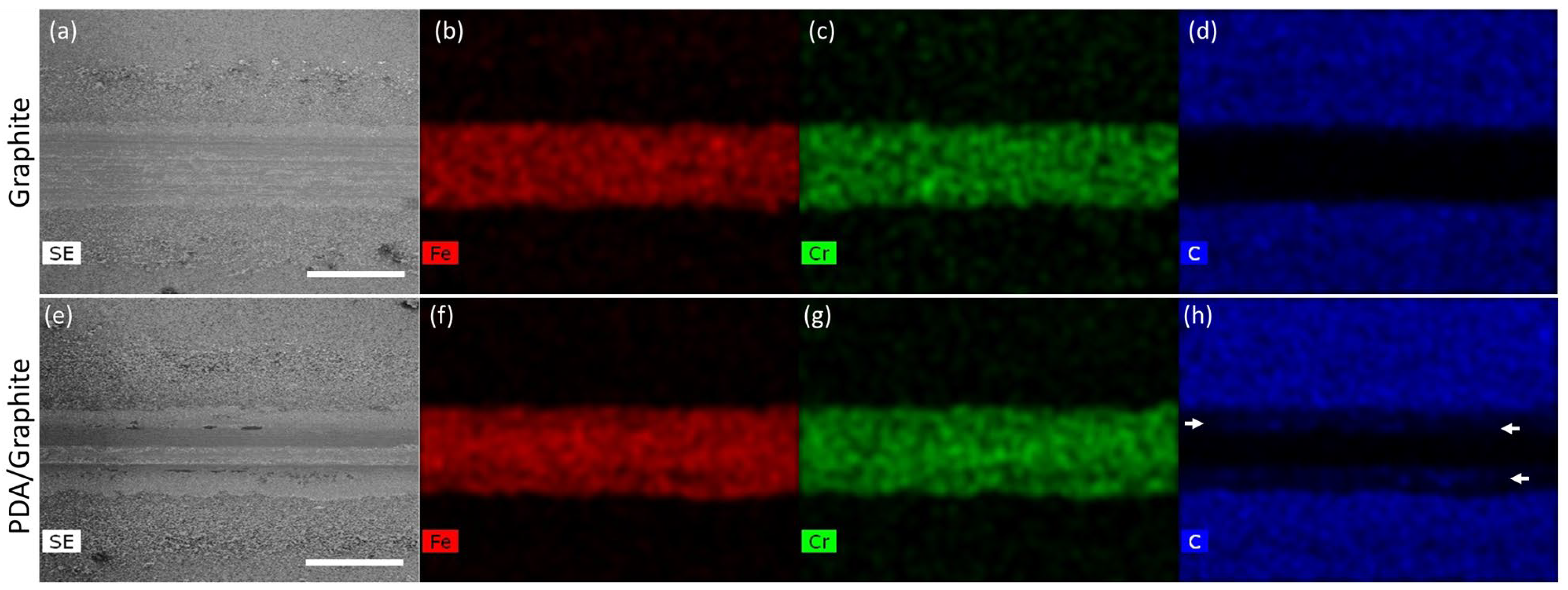 - Abe, A.; Zou, M. Enhanced Scratch Resistance of Graphite Coating Using a Polydopamine Adhesive Underlayer. Coatings 2025, 15, 690. [Google Scholar] [CrossRef]