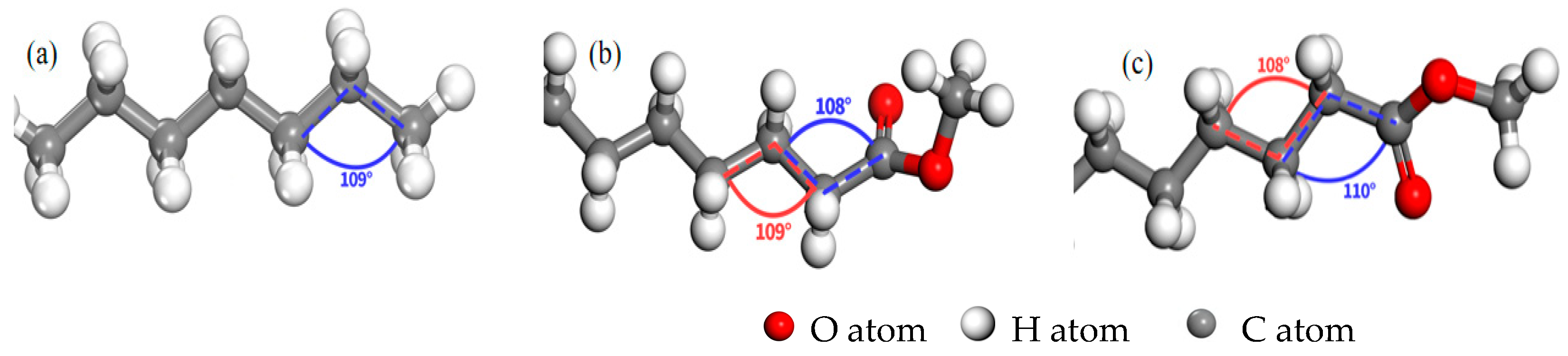 - Canterelli, C.; Darenne, B.; Fortunato, M.A.; Bruin, T.; Costa, D. DFT screening of adsorption of biodiesel molecules on aluminum and stainless steel surfaces. Results Surf. Interfaces 2022, 6, 100050. [Google Scholar] [CrossRef]