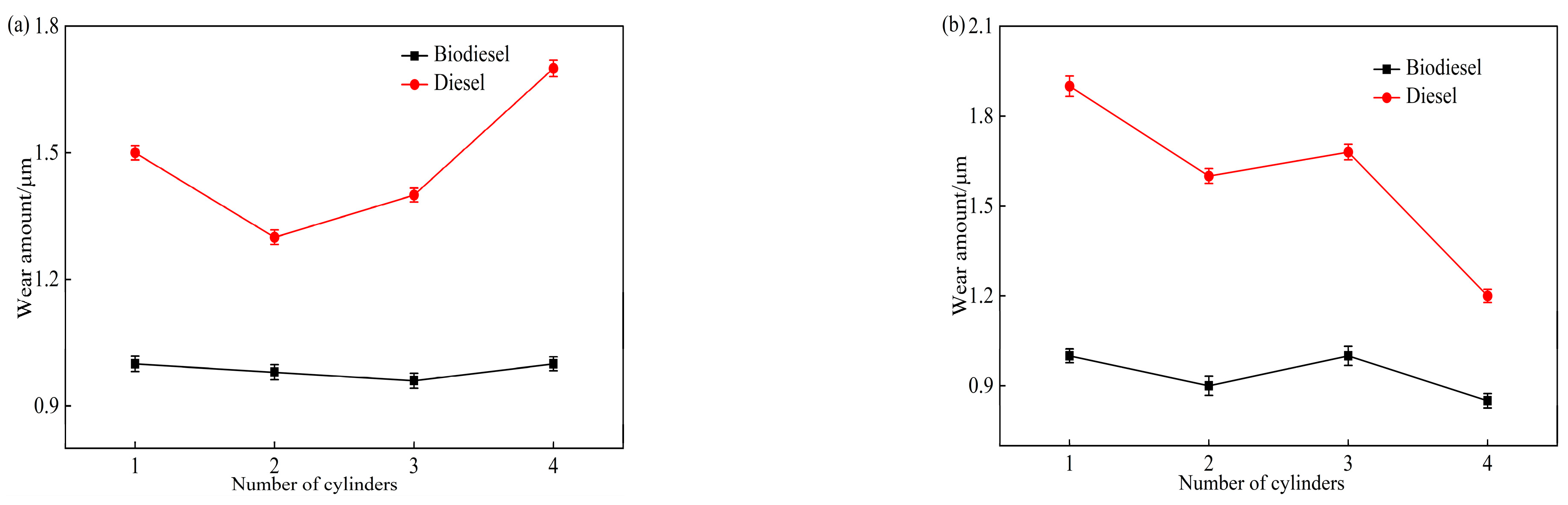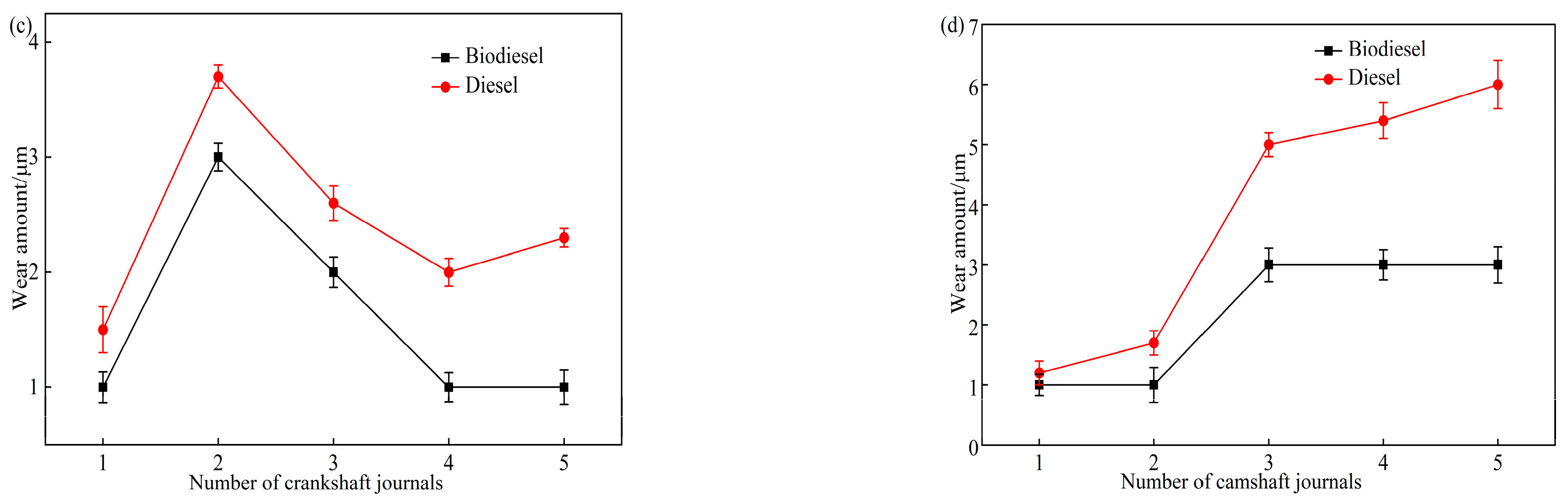 - During and after the 1000 h endurance test, no significant abnormalities were observed in the main friction pair. Wear amounts were within allowable limits. The results show that biodiesel addition reduces wear in low-sulfur diesel engine components.