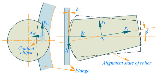 Accordingly, in the contact frame ocf-xcfycfzcf, the interaction force at the flange/roller-end contact is