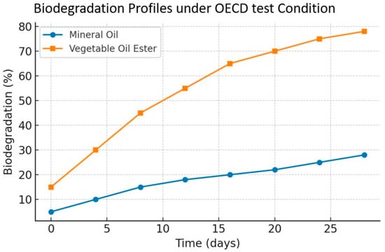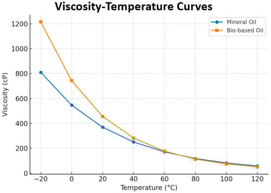 Vegetable oil-based esters typically exhibit a higher viscosity index than mineral oils, which is crucial for maintaining adequate film thickness across a broad range of operating temperatures and enhancing mixed and hydrodynamic lubrication performance [8]. As shown in Figure 1, the distinct viscosity-temperature relationships for various lubricants highlight this crucial characteristic [5,44]. However, oxidative robustness remains critical for ensuring durability at elevated temperatures, often necessitating the incorporation of effective antioxidant packages and further chemical modifications [7].