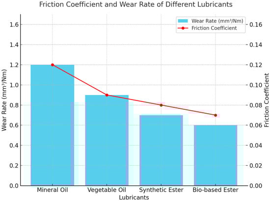 Application-oriented studies consistently confirm that chemically modified rapeseed and soybean-derived esters, when combined with appropriate additive systems, can match or even surpass the performance of mineral oils in relevant duty cycles [10]. Reported benefits include lower friction in boundary lubrication regimes, reduced wear and scuffing, and the formation of more stable lubricating films at operational temperatures, consistent with the described mechanisms [10]. As illustrated in Figure 2, comprehensive comparisons of friction coefficients and wear rates demonstrate the competitive performance of bio-based lubricants against their conventional counterparts [45,46].