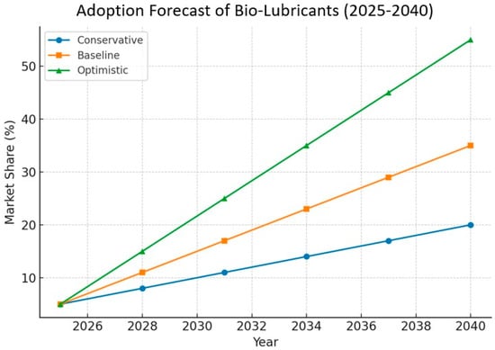While the existing literature offers numerous reviews on various facets of bio-based lubricants, there remains a critical need for a contemporary, holistic synthesis that integrates the rapid pace of technological innovation with the evolving market, regulatory, and strategic landscape [6,8]. This review, distinguishing itself from previous works, provides a comprehensive and up-to-date analysis by not only consolidating the latest scientific breakthroughs in feedstock development, chemical modifications, and additive engineering for both bio-based oils and greases, but also by critically examining the intricate interplay of global market trends, industrial adoption dynamics, and stringent regulatory frameworks shaping their commercial viability [2,12]. Furthermore, we incorporate emerging methodologies such as artificial intelligence and machine learning for predictive formulation design and advanced tribological evaluation [13,14], and benchmark performance across diverse sectors, including automotive, industrial, and marine applications. By connecting fundamental scientific advancements with crucial socio-economic and environmental considerations, this paper aims to identify key research gaps and articulate a pragmatic roadmap for accelerating the mainstream penetration of bio-based lubricants, thereby solidifying their role as an indispensable cornerstone of sustainable tribology. This review provides researchers, industry professionals, and policymakers with a forward-looking perspective essential for navigating the complexities and capitalizing on the opportunities within this rapidly evolving field.