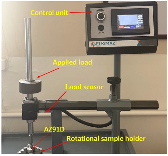 Pure magnesium has limited mechanical strength and poor corrosion resistance, which restricts its industrial applications. These shortcomings can be largely overcome by alloying with elements such as aluminum (Al), zinc (Zn), and manganese (Mn). Al improves the hardness and castability of Mg alloys, while Zn enhances their performance through a strengthening effect [9,10,11]. Among the commercial Mg alloys developed for structural applications, AZ91D, AM50A, and AM60B are widely used, where AZ91D is commonly employed in automotive engine blocks and transmission housings due to its excellent castability and strength [12,13,14,15], AM50A is preferred in safety components such as instrument panels and seat frames because of its superior ductility and energy absorption capacity [14,16,17], and AM60B finds extensive application in aerospace and automotive parts requiring a balance of strength and corrosion resistance [13,14,16]. The AZ91D magnesium alloy contains about 9% Al, 1% Zn, and the balance Mg. It is notable for its excellent castability, mechanical strength, and low cost. These properties make it a preferred material for structural components in automotive and aerospace applications, including engine blocks, transmission housings, and electronic casings. Despite these favorable attributes, certain key properties of Mg alloys, including wear resistance, corrosion resistance, creep resistance, and fatigue life, still require improvement [11,18,19]. In applications subjected to high mechanical loads, typically in the range of 1–3 GPa, and elevated temperatures between 600 and 1300 K, contact between surfaces and other materials is inevitable [20,21,22]. Under such operating conditions, surface wear emerges as a critical factor limiting the service life of Mg alloys. Wear, a type of mechanical damage resulting from relative motion between surfaces, leads to both material loss and performance degradation, and is widely recognized as one of the most critical tribological phenomena influencing the service life of engineering components [23,24]. Therefore, the systematic investigation of the wear behavior of Mg alloys under various loading and environmental conditions is of great importance for extending their service life and broadening their application areas. The direct use of Mg alloys in components such as bearings, gears, or other friction-exposed surfaces is often not suitable. However, their interaction with different materials makes tribological performance a critical factor. Therefore, surface engineering techniques and nanoadditive lubricant systems have gained significant attention as promising approaches to improve the friction and wear performance of Mg alloys [11,23].