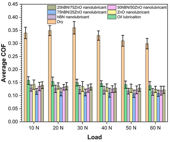 - The incorporation of solid nanoparticle additives into SAE 5W-30 motor oil consistently reduced the coefficient of friction (from 0.34 in the dry condition at 10 N to as low as 0.109 with the 75hBN/25ZnO hybrid at 60 N) and wear loss across all tested loads, demonstrating a strong correlation between friction reduction and enhanced wear resistance.