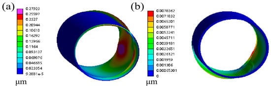 Deformation cloud diagrams: (a) Deformation cloud diagram of layer 1; (b) Deformation cloud diagram of layer 2.