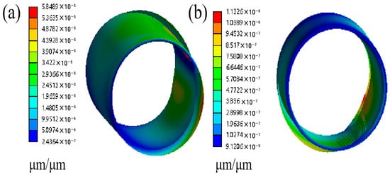 Strain cloud diagrams: (a) Strain cloud diagram of liner 1; (b) Strain cloud diagram of liner 2.