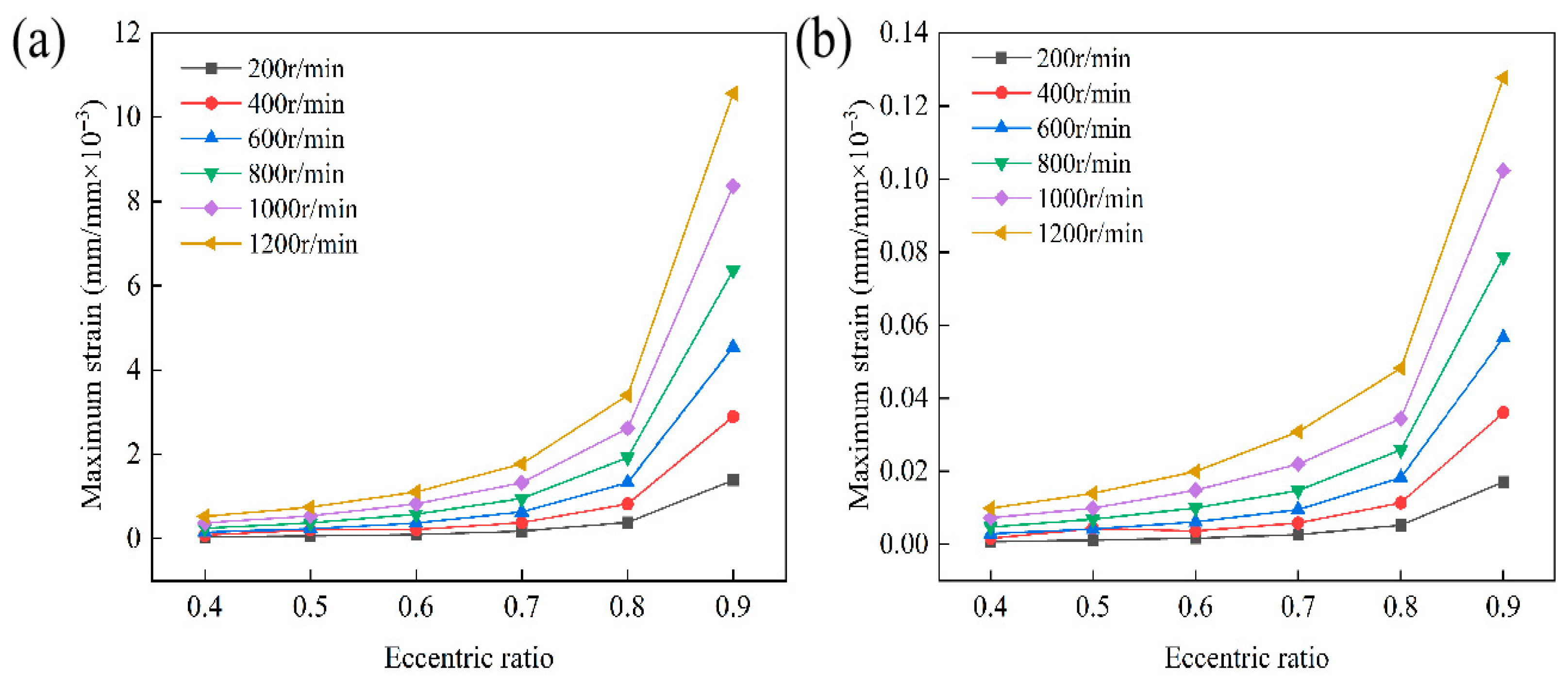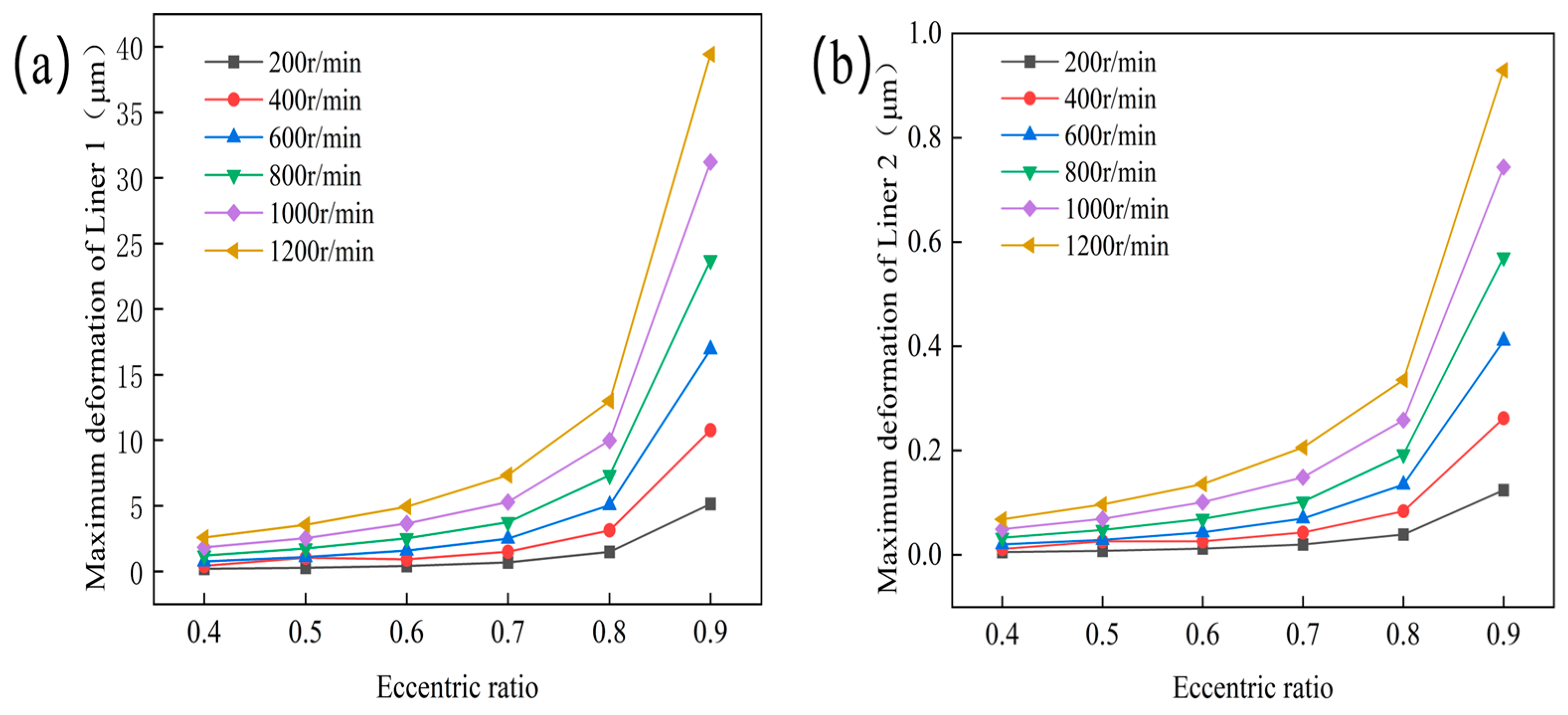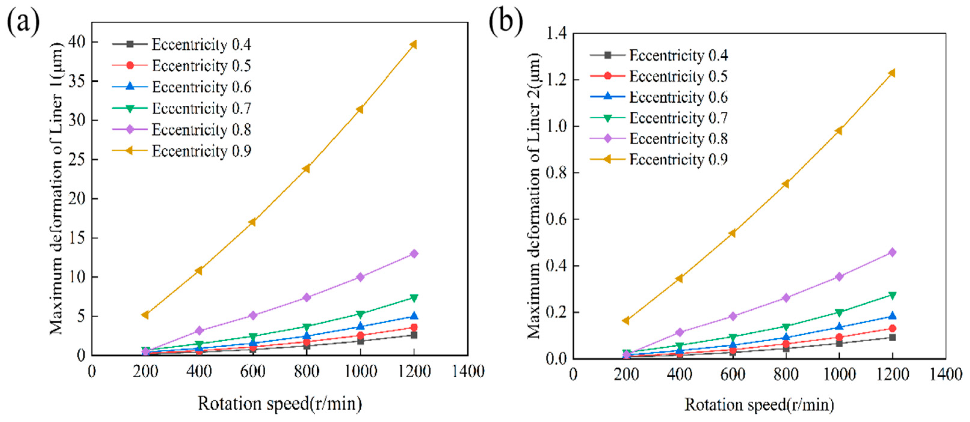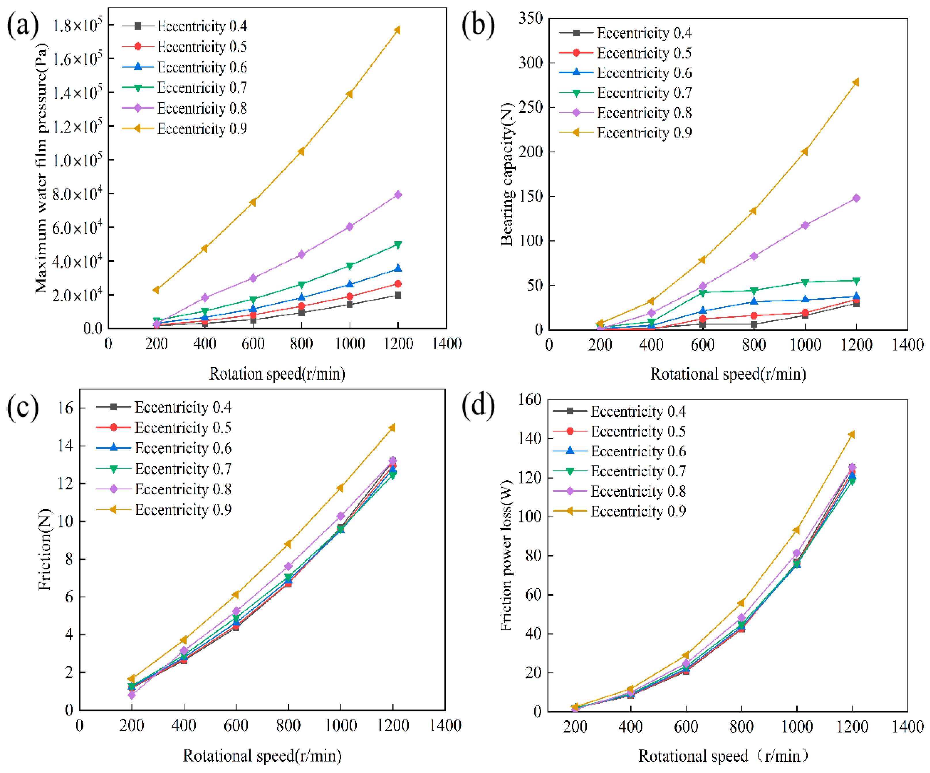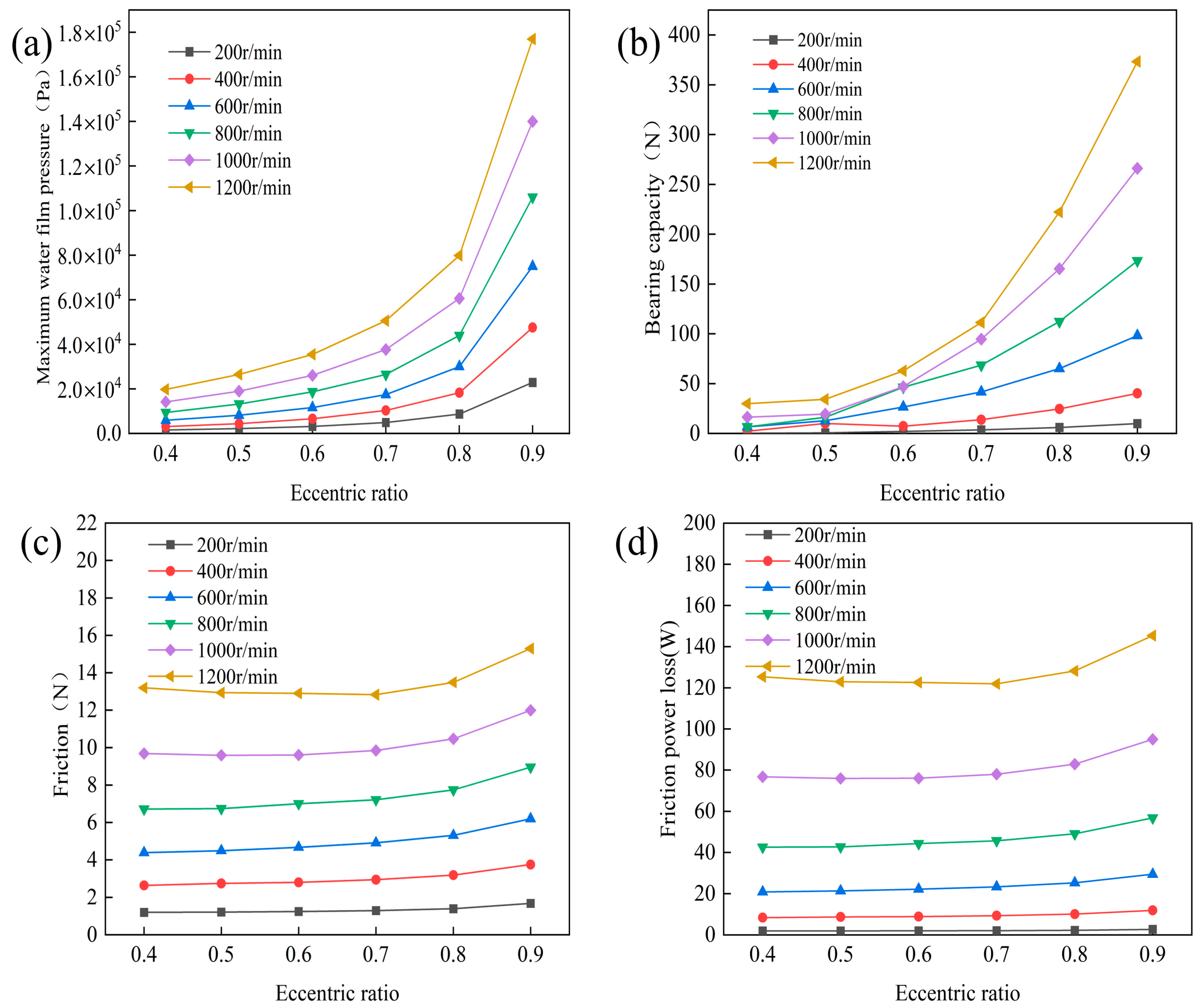 4.1. Analysis of the Influence of Eccentricity on the Lubrication Performance