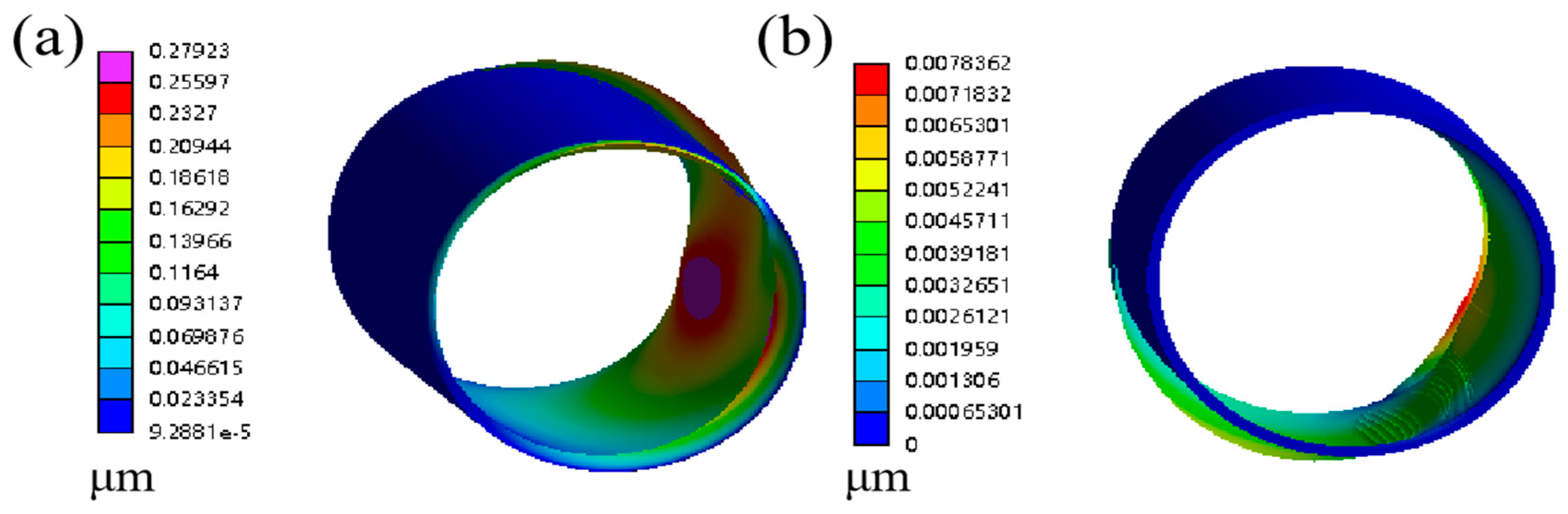 - Li, W.; Wang, J.; Ding, X.; Cheng, M. Influence of Rubber Layer Thickness on Lubrication Performance of Water-Lubricated Bearings. Lubr. Seal. 2014, 39, 64–67. (In Chinese) [Google Scholar] [CrossRef]