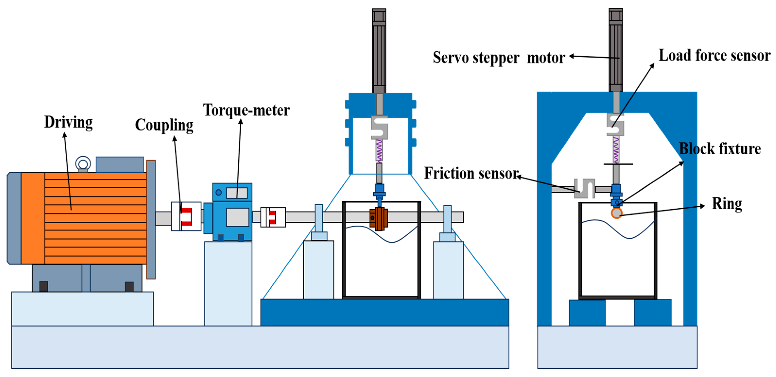 - Wang, L.; Zhou, X.; Huang, Q.; Xing, S.; Zhou, Z.; Liu, X. Effect of Sediment Particle Size on the Friction and Wear Performance of NBR/Copper Rings under Contaminated Water Lubrication Conditions. Wear 2025, 571, 205832. [Google Scholar] [CrossRef]
