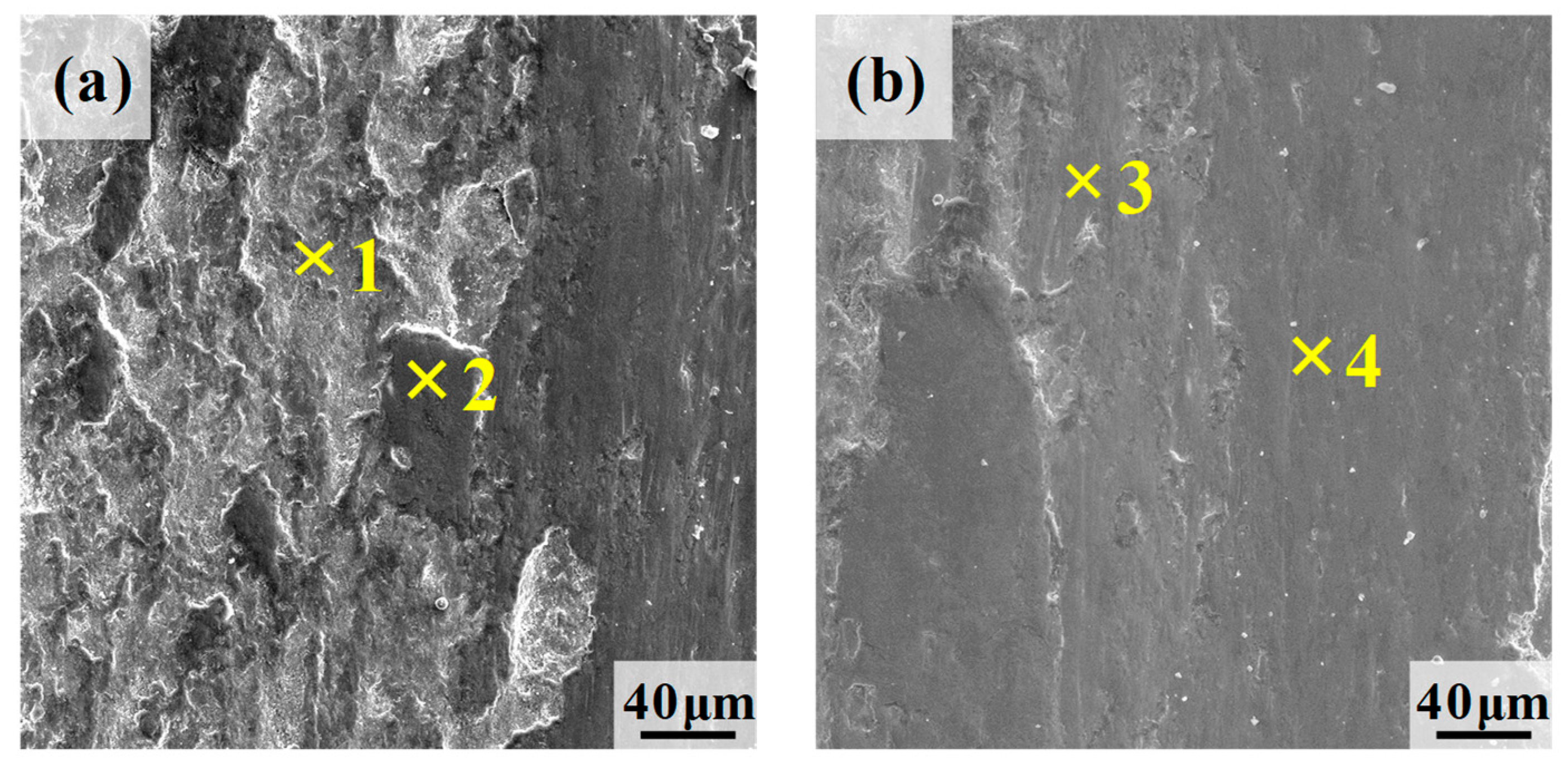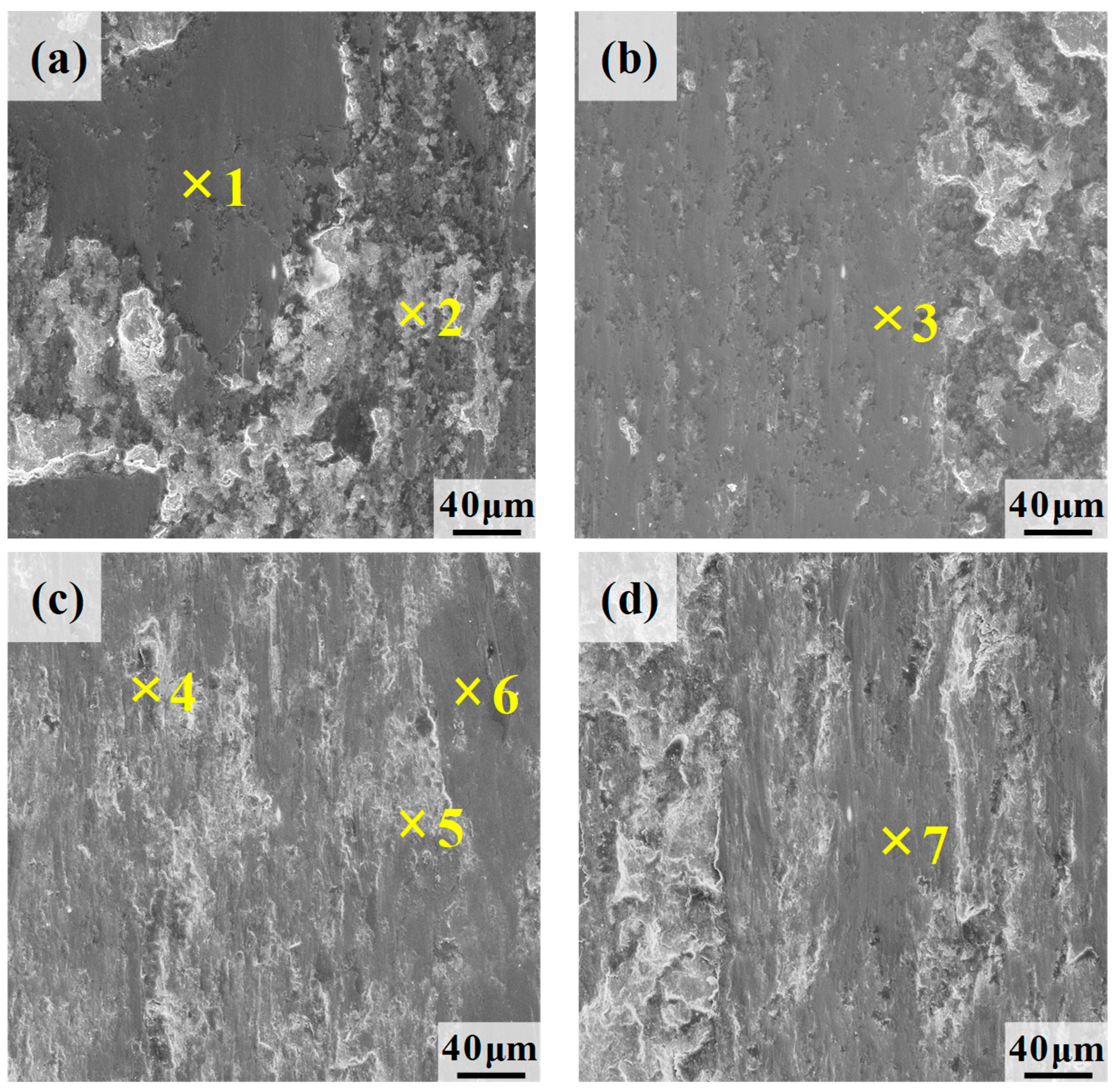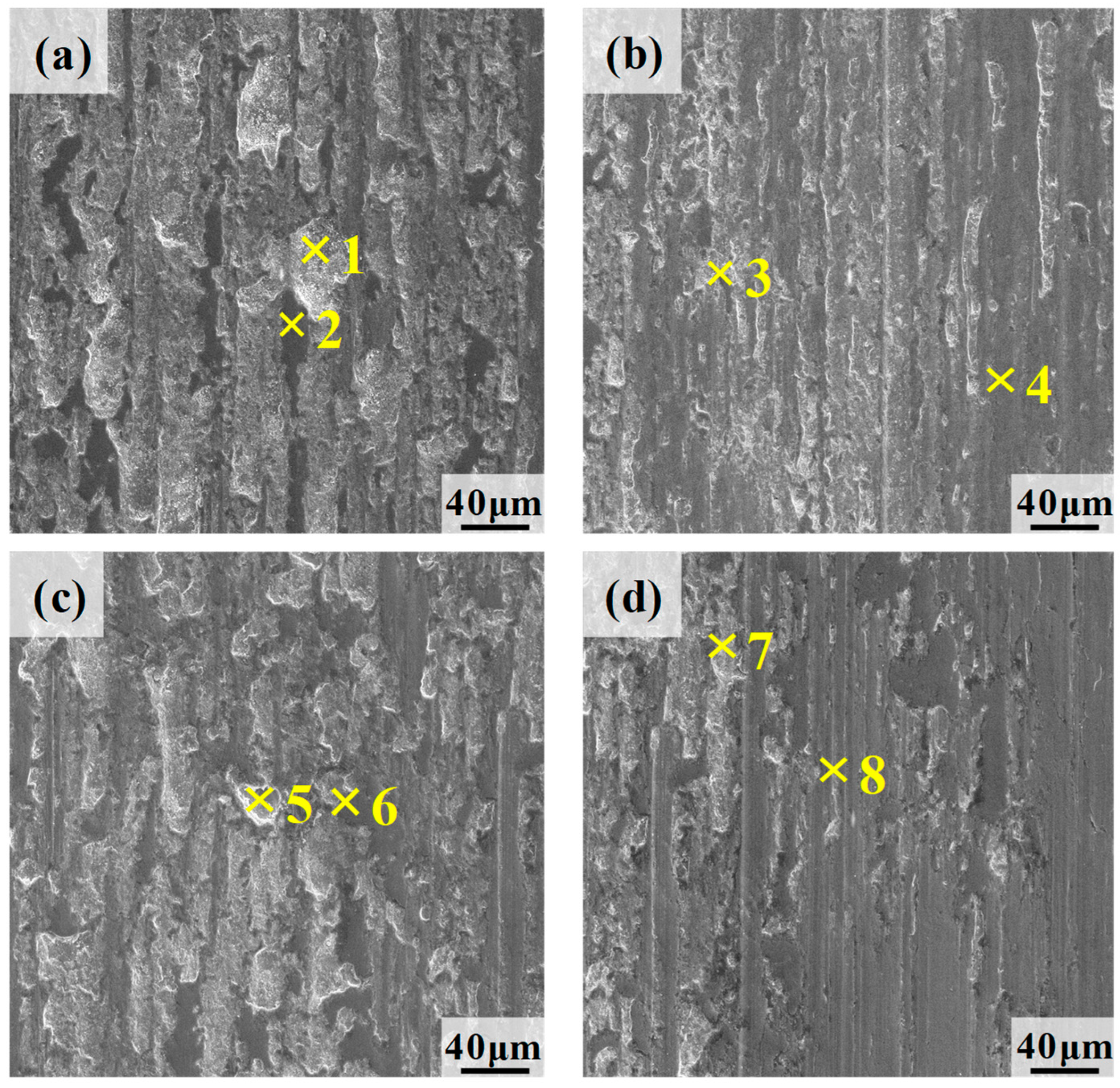- Tang, Y.H.; Ji, P.F.; Li, B.; Zhang, G.F.; Ma, W.; Wang, F.; Zhang, X.Y.; Ma, M.Z.; Liu, R.P. Effect of loading on microstructure and friction and wear behavior of an austenite lightweight steel. Tribol. Int. 2023, 177, 108006. [Google Scholar] [CrossRef]
