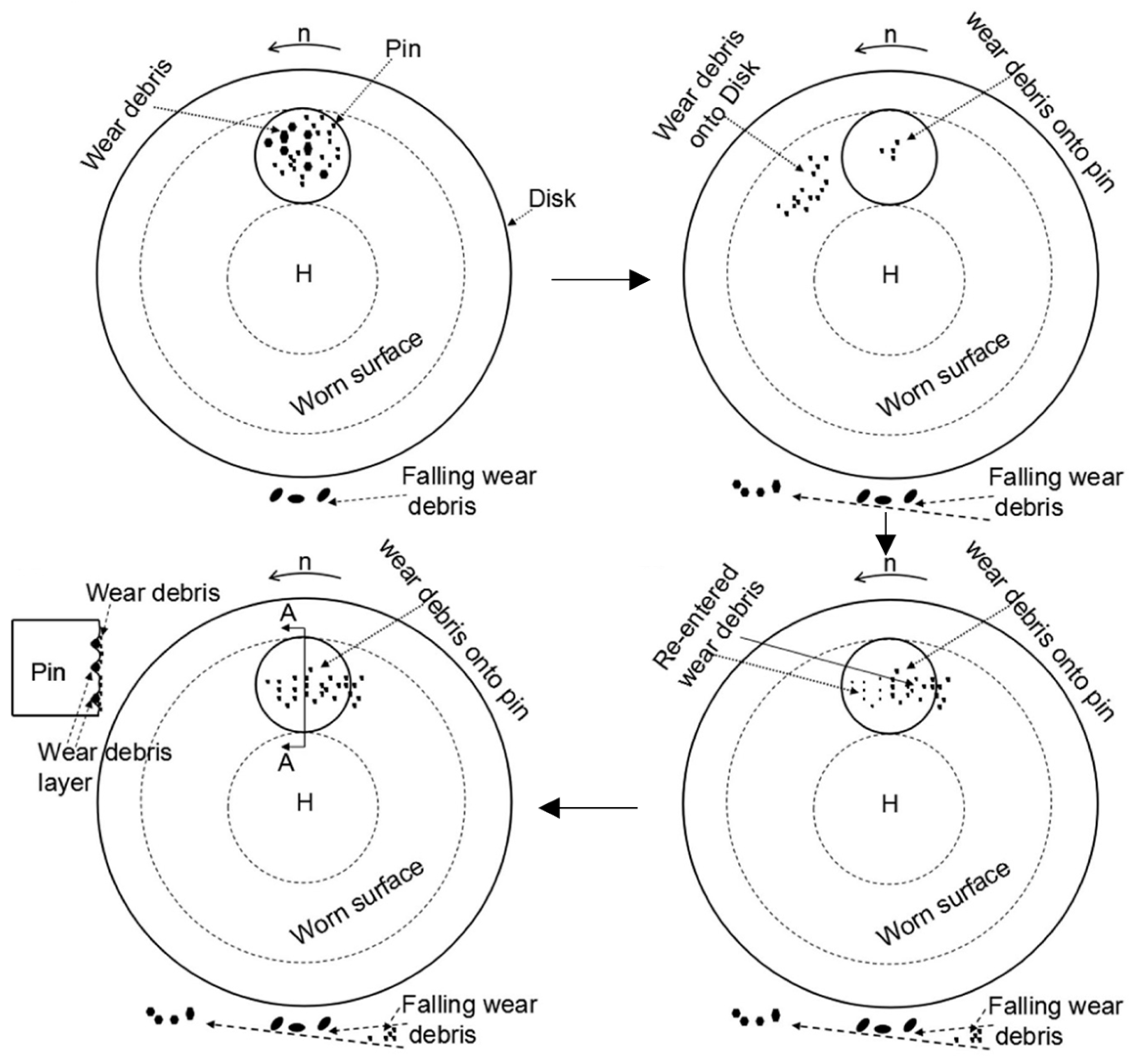 28]. Shi performed pin-on-disk tests with and without wear debris removal, observing a transition from severe to mild wear modes under the influence of a magnetic field [