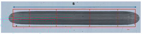 To obtain the worn volume of the flat specimen, the mean cross-sectional worn area (Wq) is multiplied by the sliding stroke (s), as presented in Equation (1):