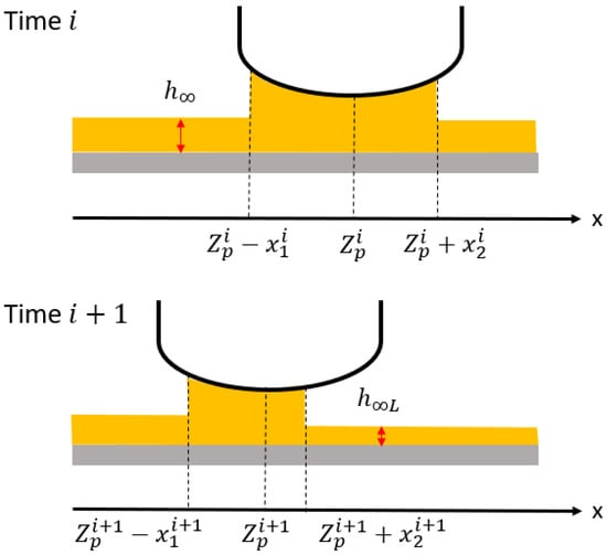 The oil film thickness left on the liner after the passage of the ring with the ring’s wetting change considered can be found via mass conservation relations, and it is illustrated in Figure 8.