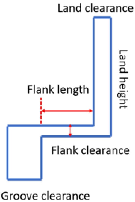 - Geometry parameters: the parameters that define the cross-section shape of the flow domain (Figure 11), the relative position between the inlet gap and the outlet gap, and the axial position of the second ring within the groove