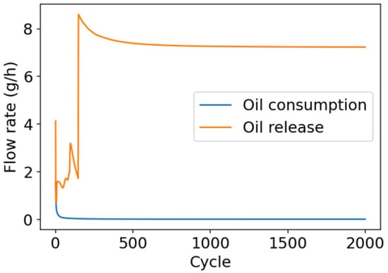 Sample result of the LOC due to gas-driven oil transport and oil release rate from the second land of the large-bore natural gas engine profile.