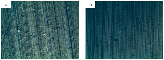 - Muzakkir, S.M.; Hirani, H. Experimental Investigation on Effect of Grinding Direction on Wear Under Heavy Load and Slow Speed Conditions with Molybdenum Disulphide (MoS2) as Additive in Commercial Lubricant. Int. J. Eng. Res. 2015, 4, 102–104. [Google Scholar] [CrossRef]