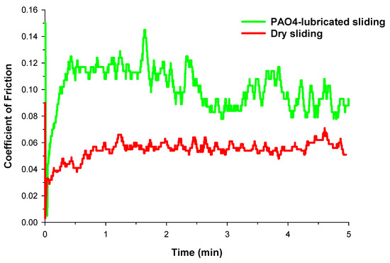 - Evaluation of the coating during PAO4-lubricated sliding revealed a coefficient of friction that was double the value recorded in dry sliding.