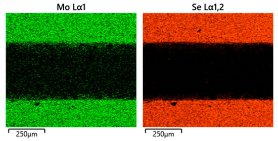 EDS mapping of the wear track of MoSe2 coating tested in dry sliding.
