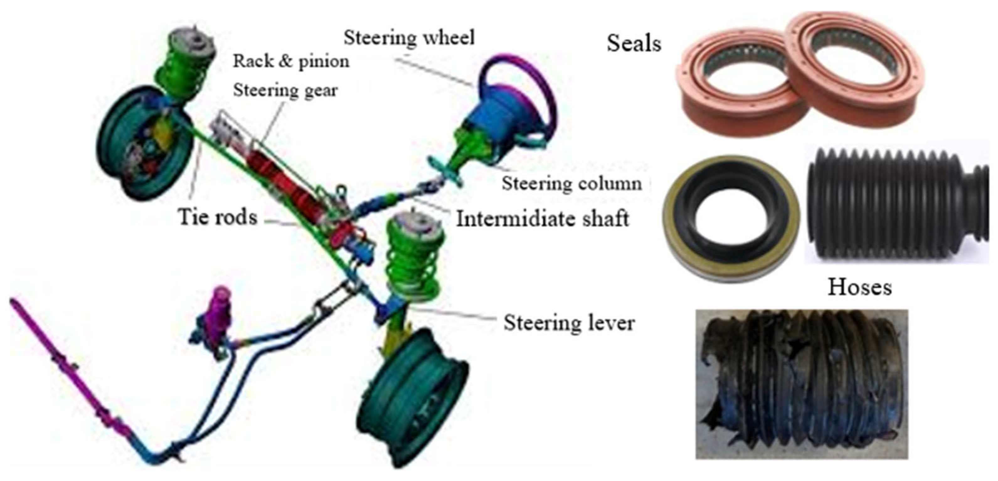 - Wang, Z.; Wei, S.; Zhang, Q. Analysis of multiple failure behaviors of steering knuckle ball hinge of multi-axle heavy vehicle. Adv. Mech. Eng. 2021, 225, 627–639. [Google Scholar] [CrossRef]