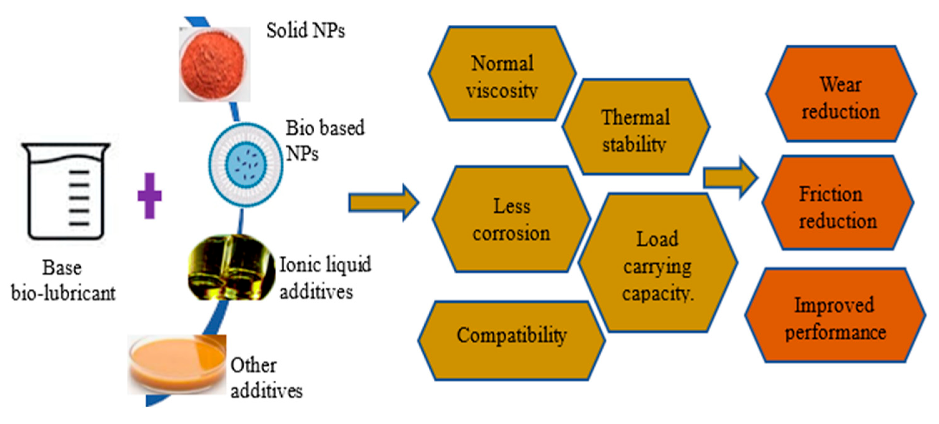 - Opia, A.C. A Review on Bio-Lubricants as an Alternative Green Product: Tribological Performance, Mechanism, Challenges and Future Opportunities. Tribol. Online 2023, 18, 18–33. [Google Scholar] [CrossRef]