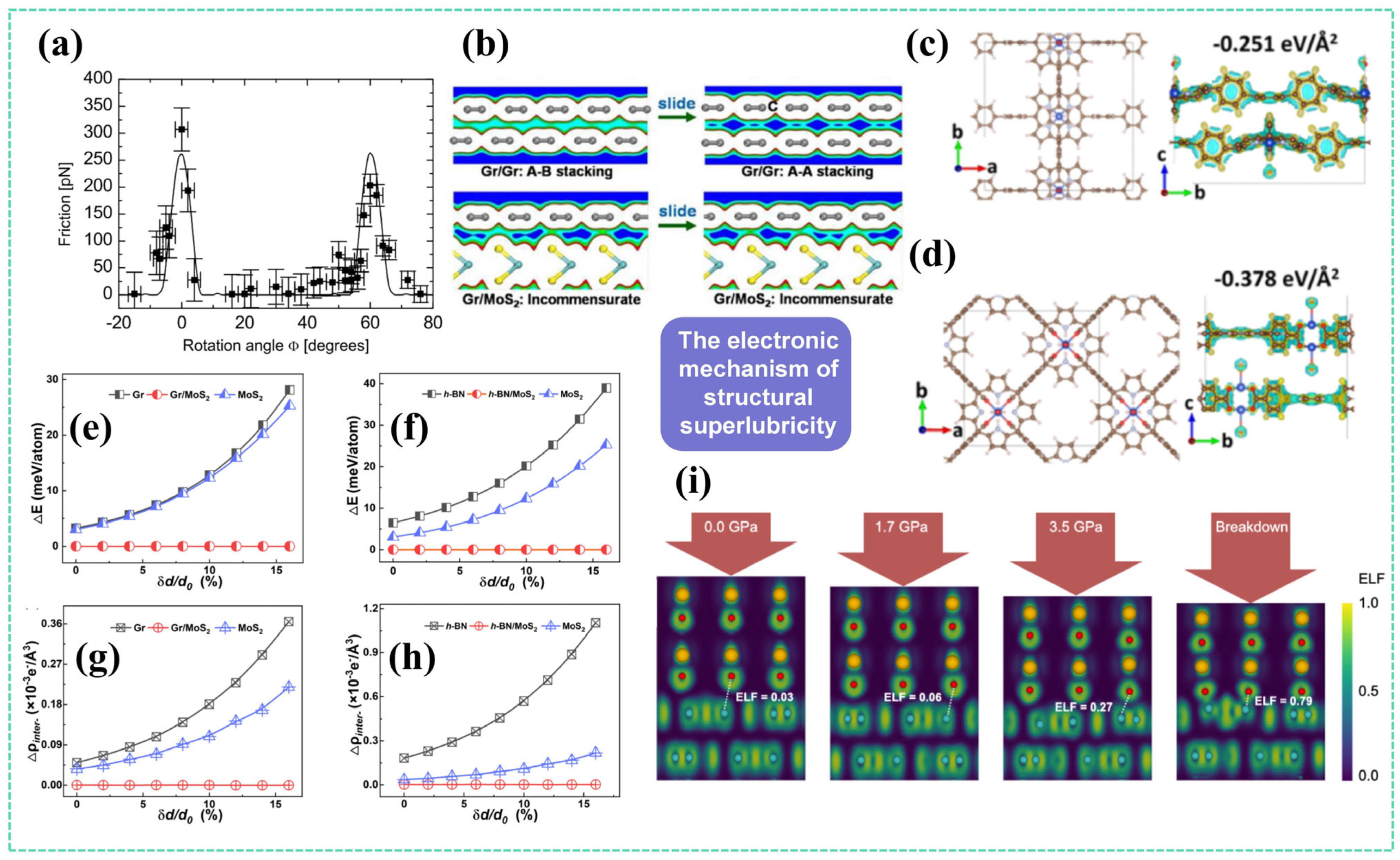 - Cheng, Z.; Feng, H.; Lu, Y.; Lu, Z.; He, Q.-C. Electron-scale origin of structural superlubricity. Tribol. Int. 2025, 202, 110294. [Google Scholar] [CrossRef]