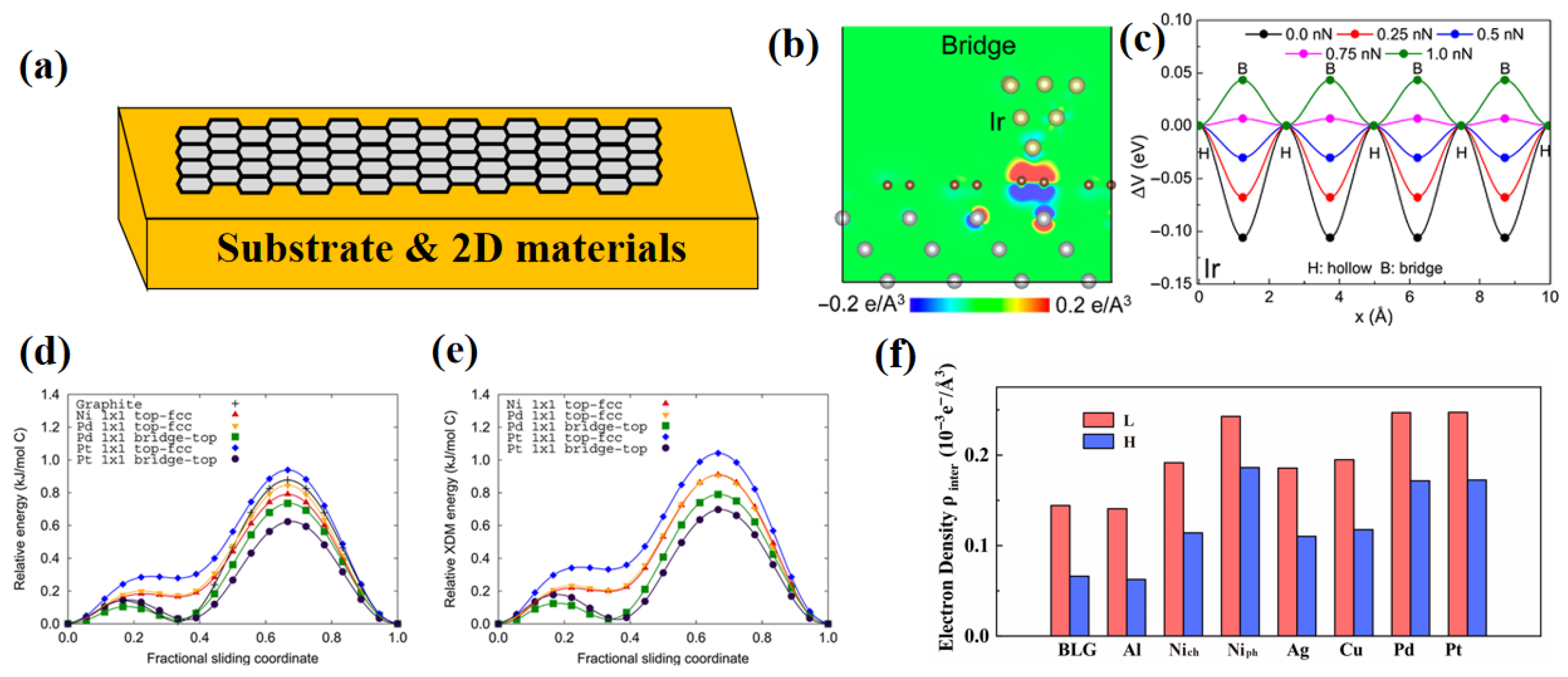 - Gao, L.; Ma, Y.; Liu, Y.; Song, A.; Ma, T.; Hu, Y.; Su, Y.; Qiao, L. Anomalous frictional behaviors of Ir and Au tips sliding on graphene/Ni (111) substrate: Density functional theory calculations. J. Phys. Chem. C 2017, 121, 21397–21404. [Google Scholar] [CrossRef]