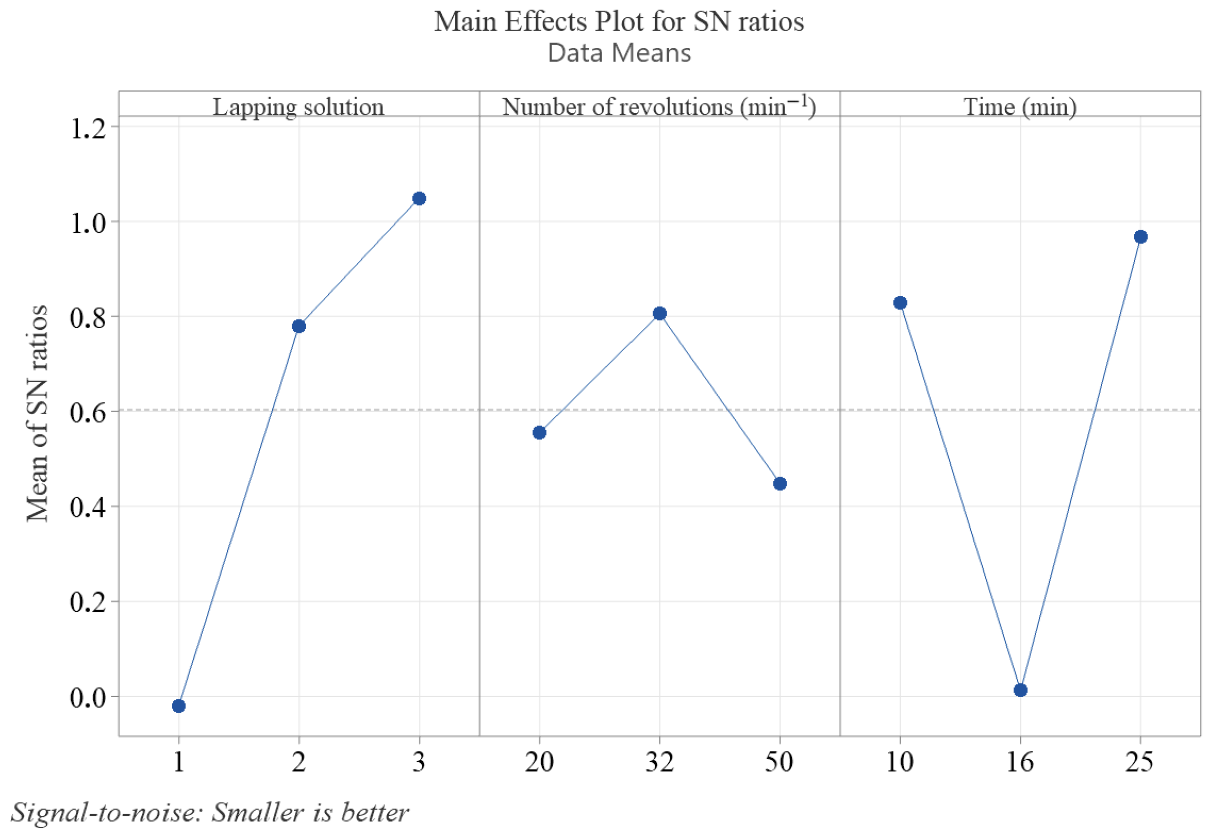 - Under the optimized parameters determined by Taguchi analysis, the palm oil-based lapping solution consistently provided the best surface quality and was found to be reliable for industrial applications.
