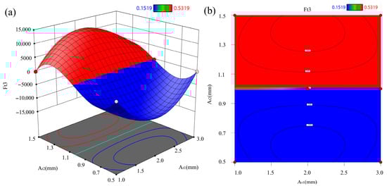 Figure 10 presents the response surface and contour plots, which visually illustrate the effects of the two factors and their interaction on the normal force. It is evident from the plots that an optimal region exists within the experimental range where the normal force reaches a minimum value.