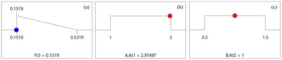 The optimization module in the Design-Expert software was used to solve the regression model, with the objective set to “minimize the normal force”. The optimization results (Figure 11) indicate that a theoretically minimum average normal force is achieved when the bump diameter is 2.975 mm and the bump spacing is 1.0 mm. The predicted minimum value for the force under these conditions is 0.1519 N.