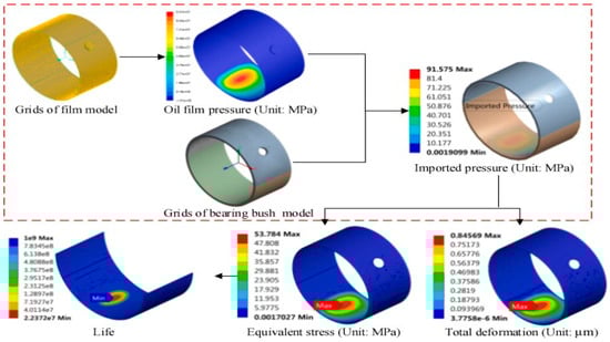 - Dong, Q.; Yin, Z.; Li, H.; Gao, G.; Zhong, N.; Chen, Y. Simulation and experimental validation of fatigue strength assessment of journal bearing bushings. Eng. Fail. Anal. 2020, 109, 104275. [Google Scholar] [CrossRef]