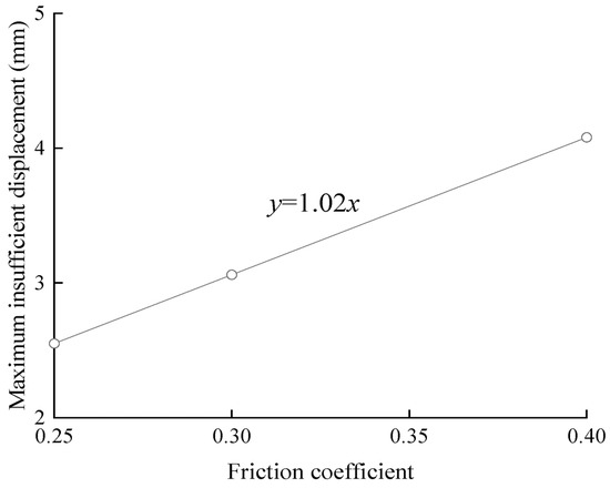As shown in Table 4, the five independent finite-element simulations at each friction-coefficient level produce within-group standard deviations no greater than 0.00071 mm and coefficients of variation below 2%, demonstrating excellent repeatability. Furthermore, the mean maximum insufficient displacement increases by approximately 0.03 mm as μ rises from 0.25 to 0.30 and by a further 0.07 mm when μ increases from 0.30 to 0.40, confirming a clear linear growth trend.