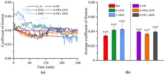 (a) Friction coefficient variation during wear and (b) the average friction coefficient.