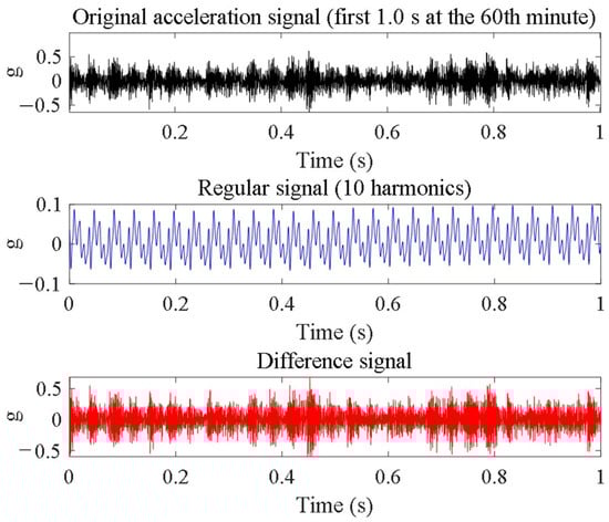 Decomposition of the TSA vibration signal into regular and difference components.