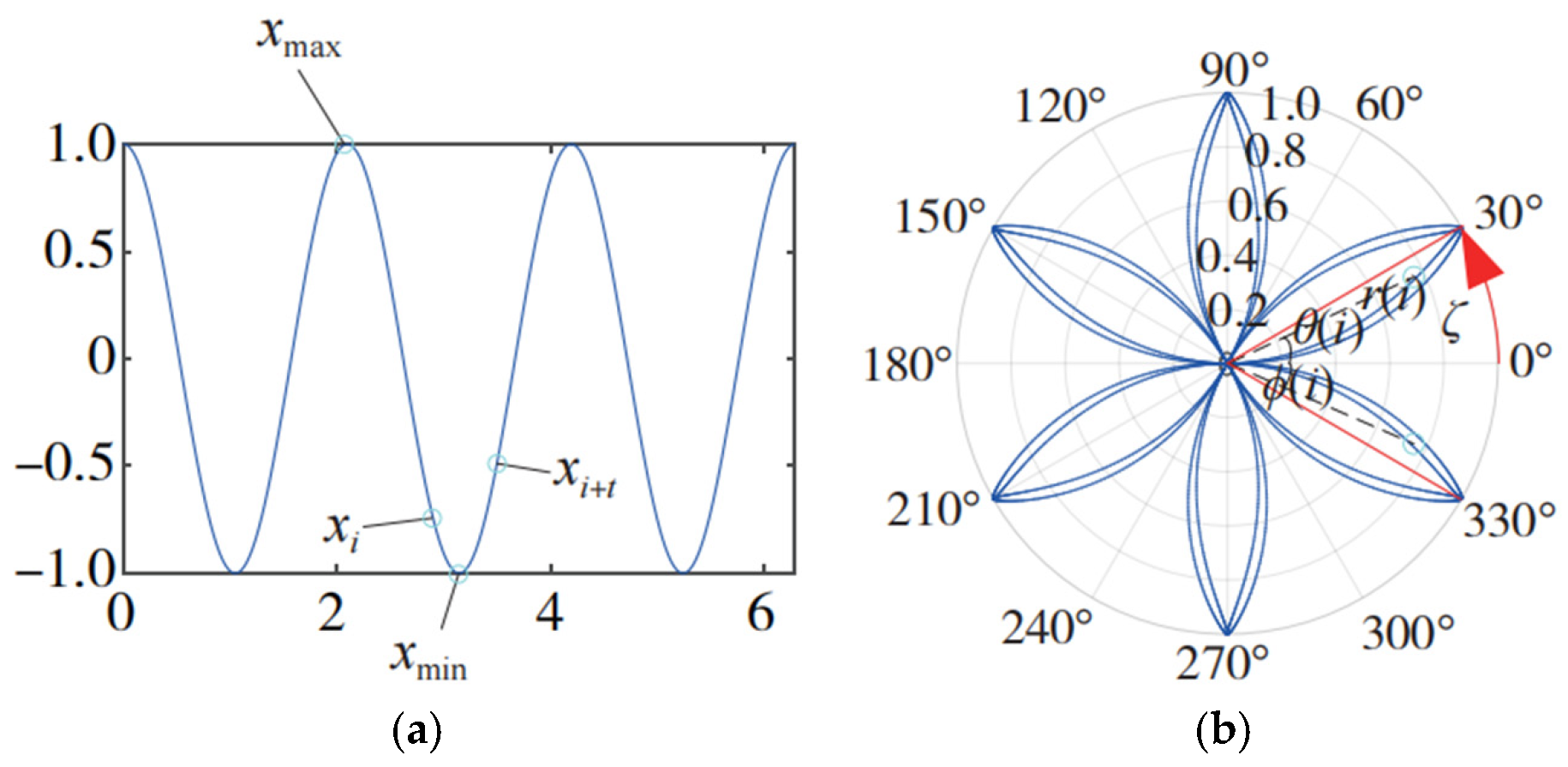 - Calculation of cross-correlation coefficient: Select two samples Api and Aqj (p, q = 1, 2, …, P, i, j = 1, 2, …, K, p ≠ q) from different categories, and calculate the cross-correlation coefficient r(ξ,t)ApiAqj using Equation (3);
