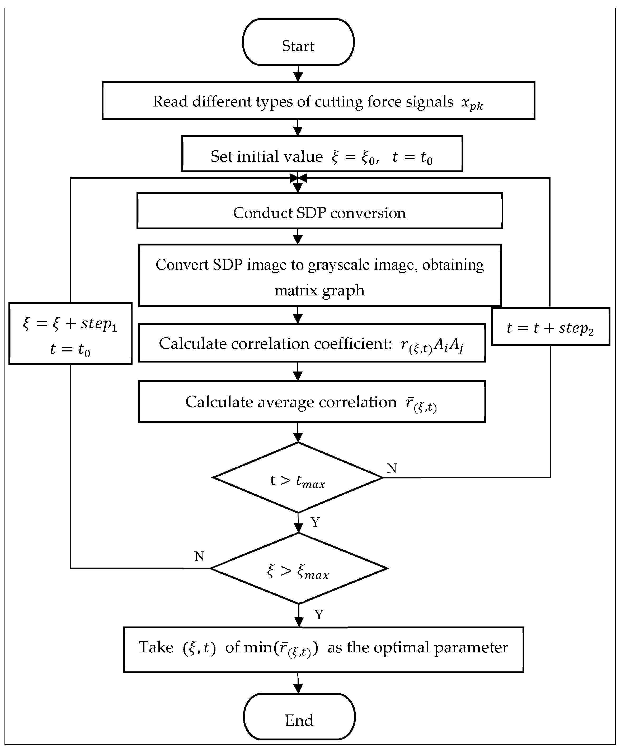 - SDP conversion and grayscale image generation: Perform SDP conversion on the cutting force signal xpk based on the parameter set (ξ, t), and convert it into a grayscale image;