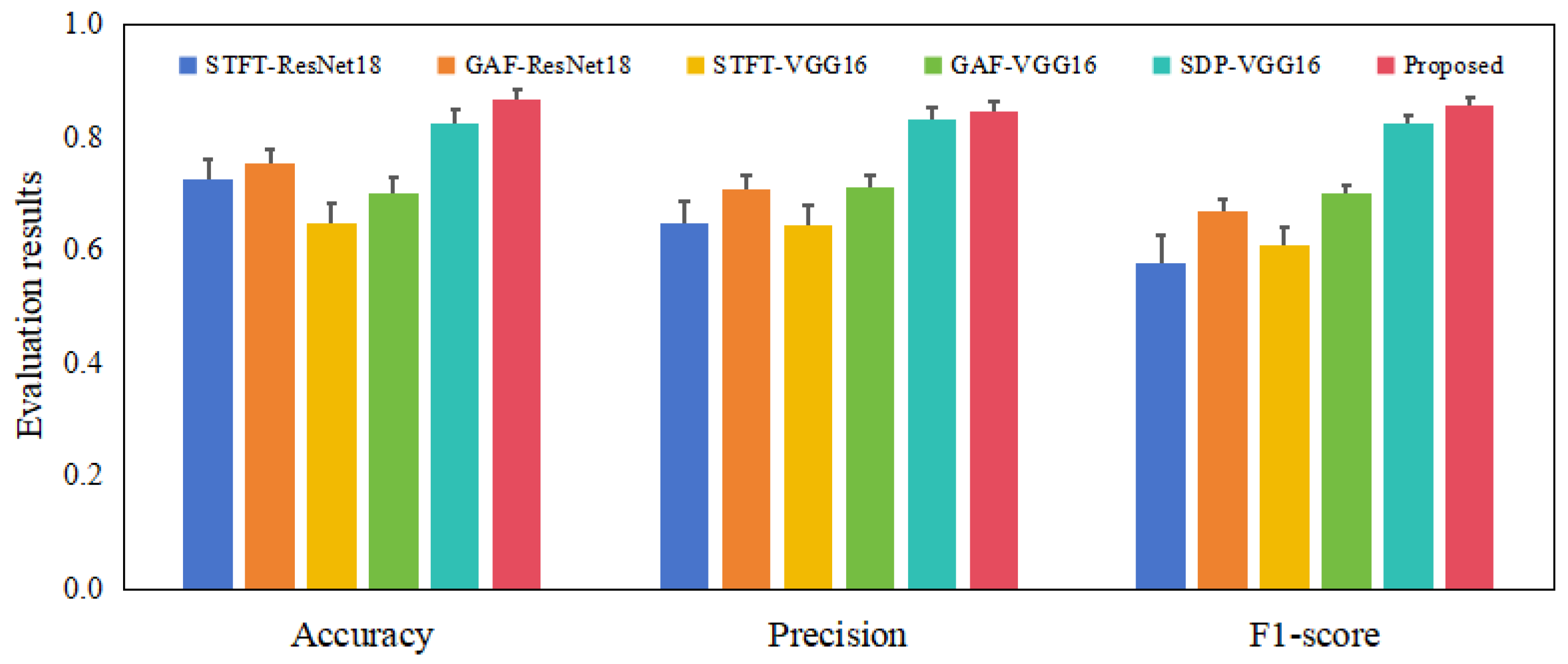 | STFT-ResNet18 | GAF-ResNet18 | STFT-VGG16 | GAF-VGG16 | SDP-VGG16 | Proposed | |