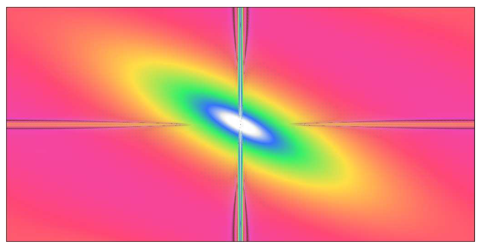 Dental surface of a grazer-type herbivore. 1024 × 512 px surface, size = 132 × 66 m. , , , m. The white ellipsis is the autocorrelation function cut at . Note that stands for .