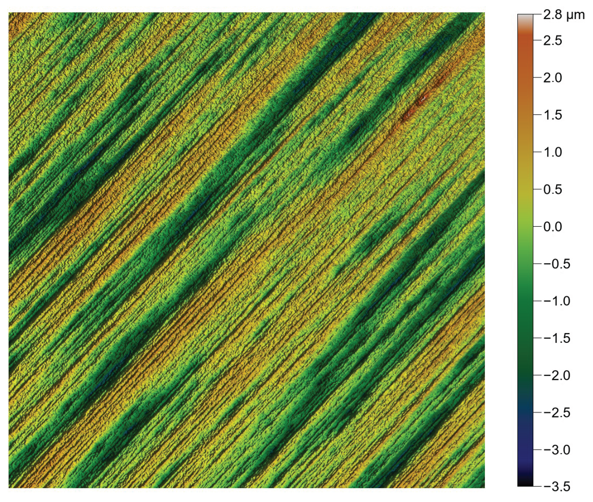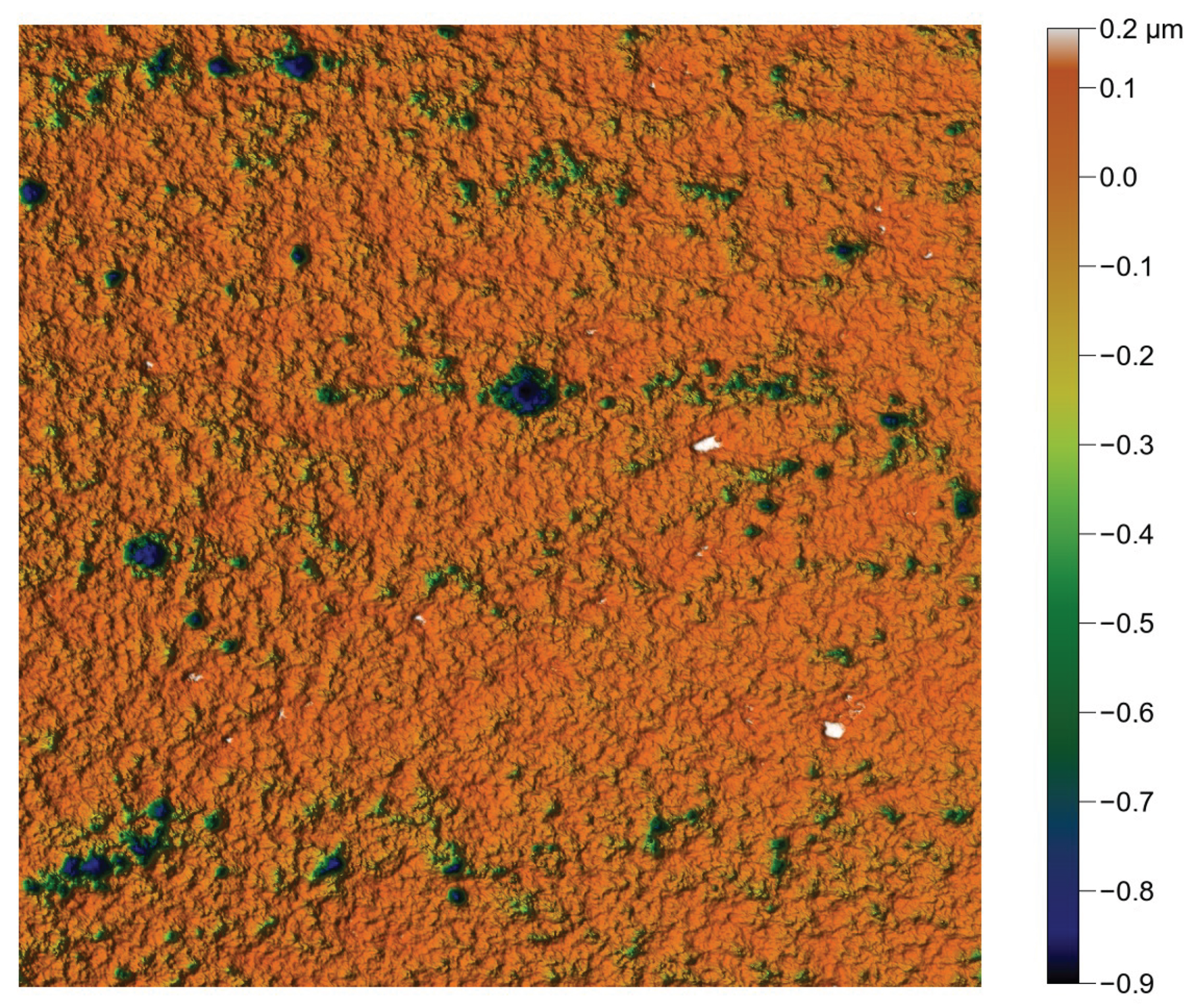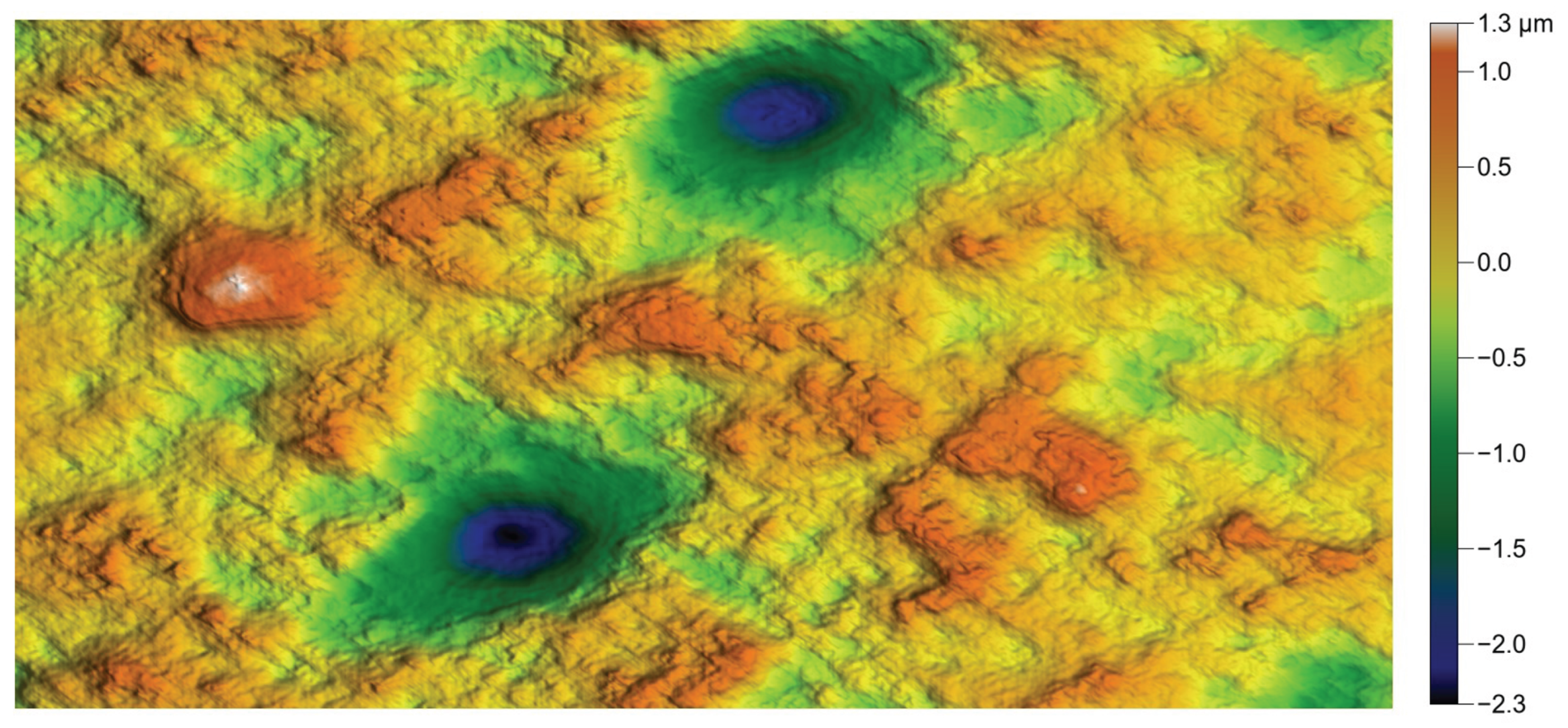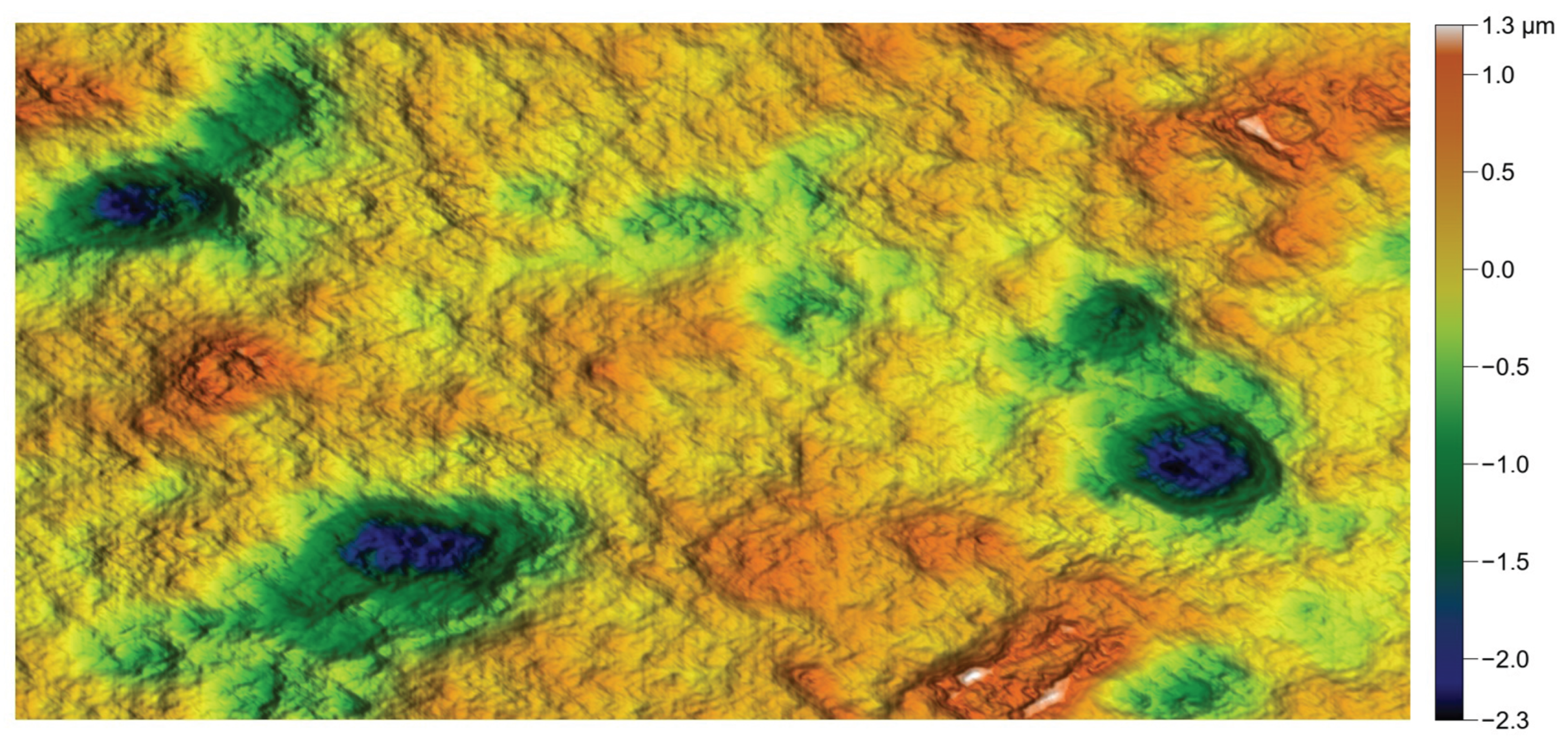 Reproduction of the polished surface, showing a lack of high and flat areas, resulting from the polishing process.