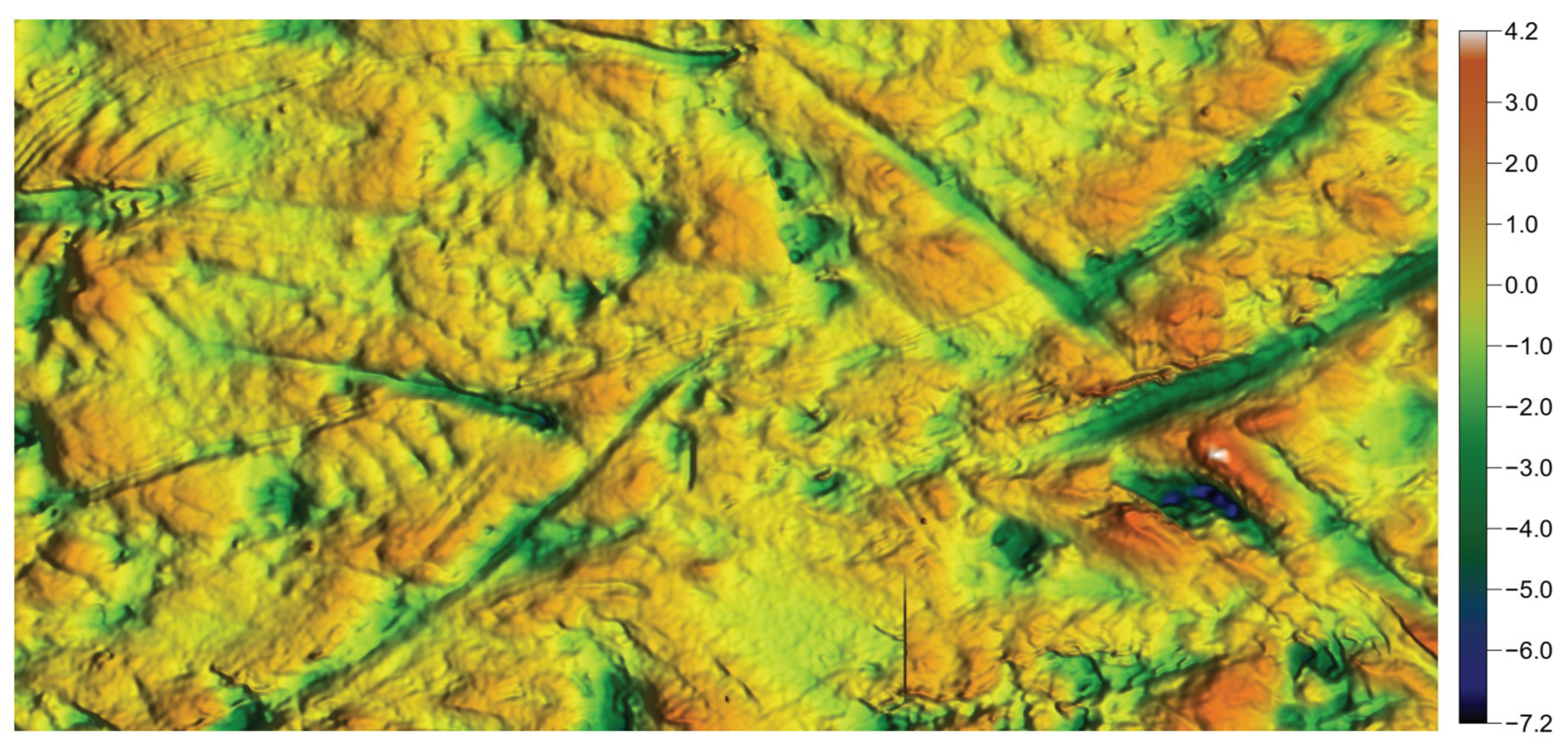 Localized scratches that cannot result from a convolution operator applied to homogeneous noise.