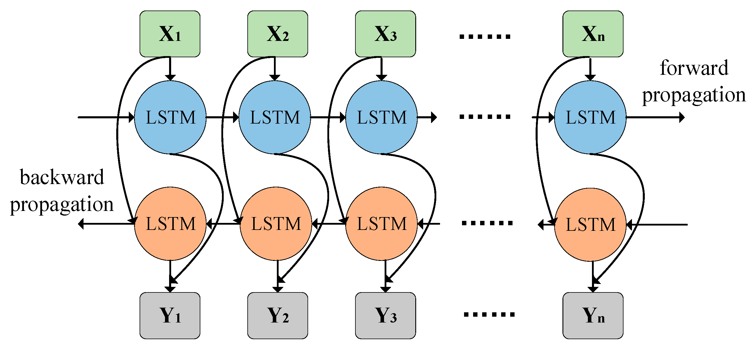 The Bidirectional Long Short-Term Memory network (BiLSTM) introduces a reverse LSTM based on the traditional LSTM. By simultaneously modeling the forward and backward sequence dependencies, it not only enhances the ability to model the global context but also alleviates the long-distance dependency problem, achieving more accurate prediction results. Its structure is shown in