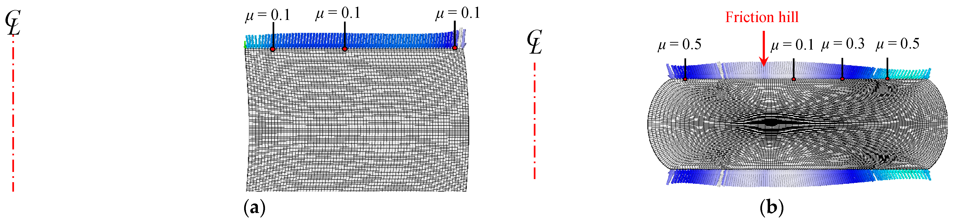 - Relative velocity: It has at least a right to determine the direction of friction stress. When the right vanishes, the friction stress becomes unknown and has nothing to do with the frictional law. Svoboda and Jopek [43] experimentally showed the significant dependence of the friction coefficient on the strain rate (which is almost proportional to the relative velocity) at elevated temperatures. They showed that the friction coefficient decreases when the relative velocity is incredible.